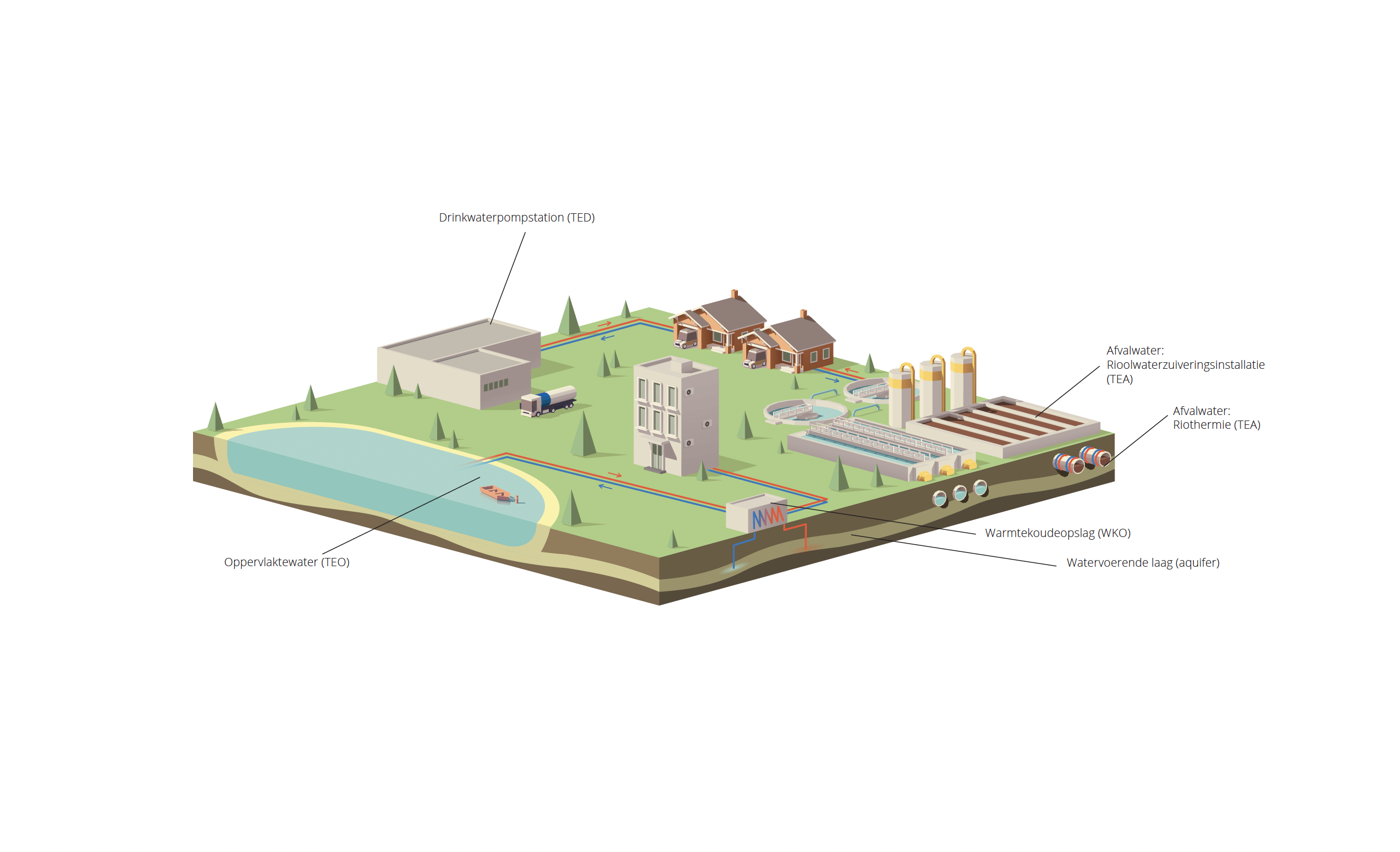 - TEO – Thermische energie uit oppervlaktewater, bijvoorbeeld een kanaal, rivier of een meer