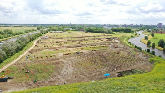 “In eerste instantie was de 22 hectare op het baggerdepot bedoeld voor zon-PV. Gaandeweg kwam de focus meer op zonthermisch te liggen. WarmteStad wilde aanvankelijk geothermische bronnen laten slaan maar kwam daar later op terug. De lange looptijd is bovendien terug te voeren op de schaal van dit project, de technische voorbereiding, de selectie van leveranciers en de afstemming met andere bronnen: de twee datacenters op het Zerniketerrein van de RuG (Rijksuniversiteit Groningen).”